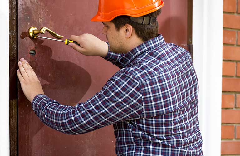 We carefully adjust the lock position and install supporting hardware if needed to ensure it lines up perfectly with the strike plate for a smooth and secure locking action.